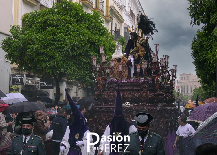 La lluvia hizo acto de presencia en la jornada del Lunes Santo, tal y como vaticinaban las previsiones meteorológicas, rompiendo la misma y obligando a las hermandades a buscar refugio.